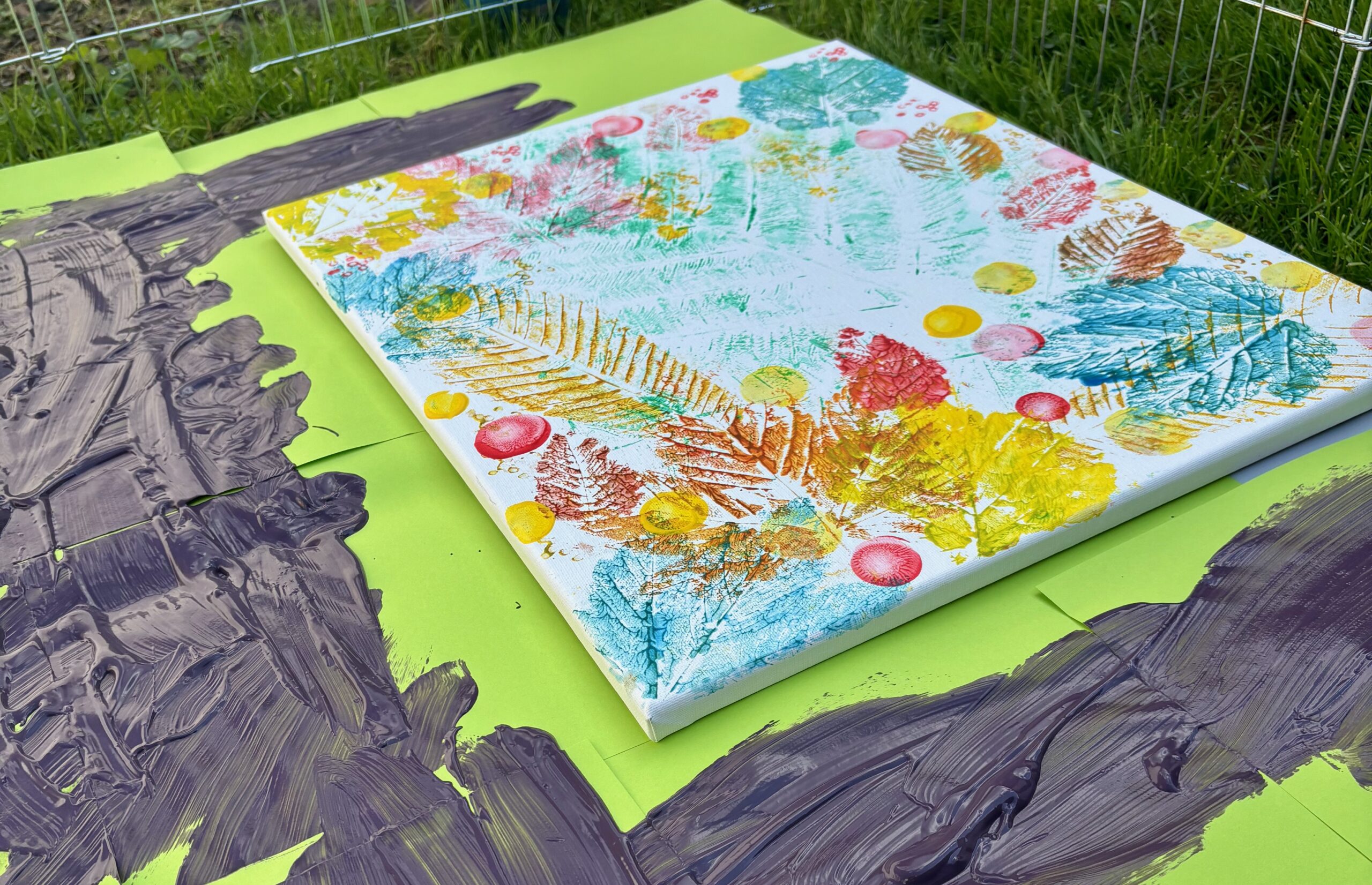 Le processus créatif a été aussi important que le résultat final. Chaque participant a pu contribuer à la réalisation de la toile, qu’il s’agisse de peindre, de disposer les feuilles ou encore de suivre attentivement les déplacements de Pissenlit sur la toile. L’ensemble a permis de créer une œuvre unique, chargée de sens et de symbolisme pour les participants.